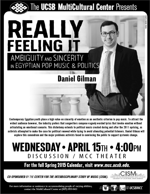Contemporary Egyptian youth place a high premium on sincerity of emotion as an aesthetic criterion in pop music. The industry that produces such music, however, wants to attract the widest possible consumer base, which encourages songwriters to compose vaguely worded, cliché-ridden songs that invoke emotional response without clearly describing an emotional scenario. This dichotomy extends to the realm of political music created during and after the 2011 uprising in Egypt, as youthful activists attempted to make the case for political renewal while at the same time trying to avoid alienating any potential listener. This talk will explore the nature of this aesthetic conundrum and explain one of the major problems that activists faced in convincing the larger public to support systemic change.