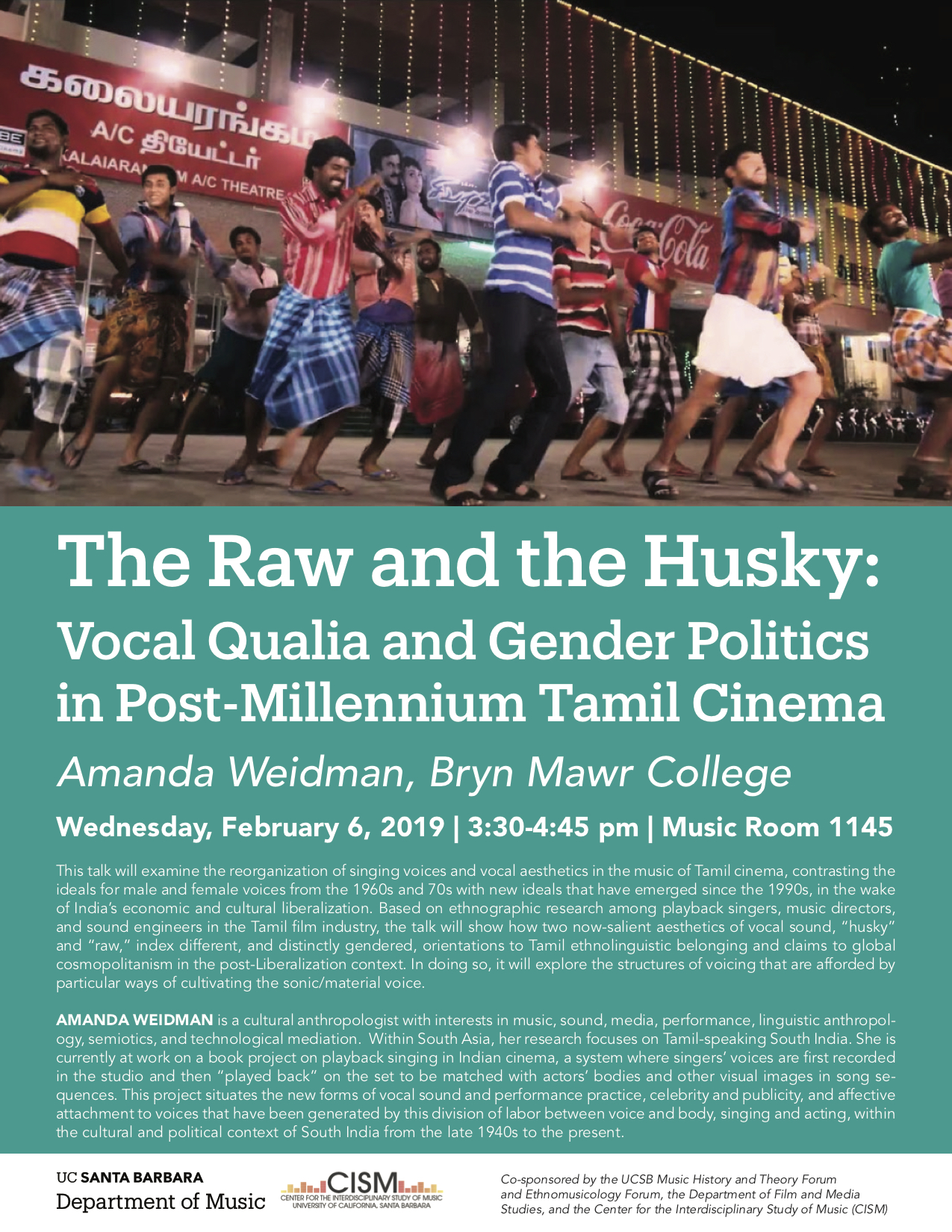 TALK: The Raw and the Husky: Vocal Qualia and Gender Politics in Post-Millennium Tamil Cinema, Amanda Weidman (Anthropology, Bryn Mawr College)